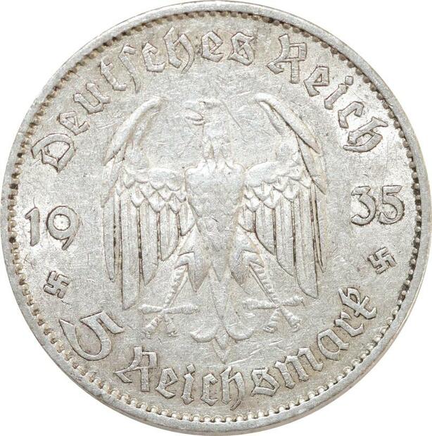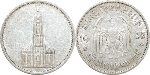 Q0507 Germany Berlin 5 Reichsmark Potsdam Garrison Church 1935 A Silver