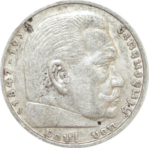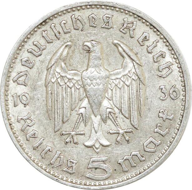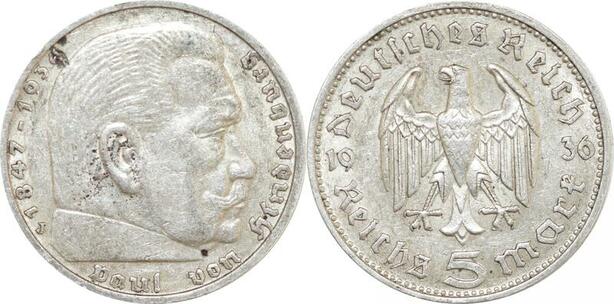 Q0508 Germany Hamburg 5 Reichsmark Hinbenburg 1936 J Silver > Make Offer