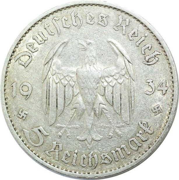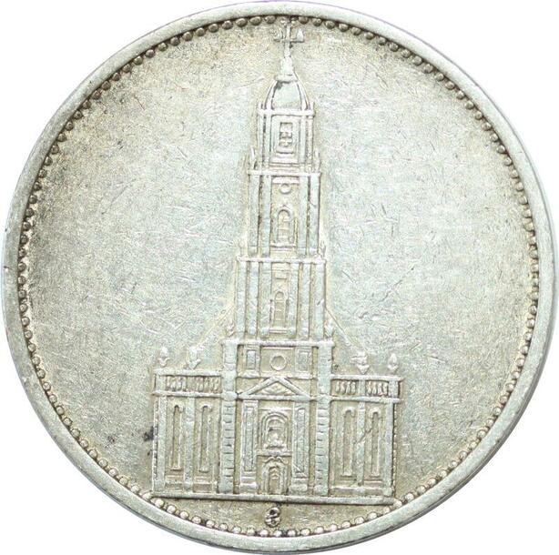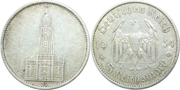 Q0516 Germany Baden 5 Reichsmark Potsdam Garrison Church 1934 G Silver