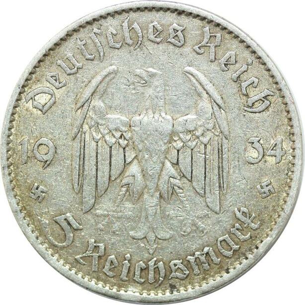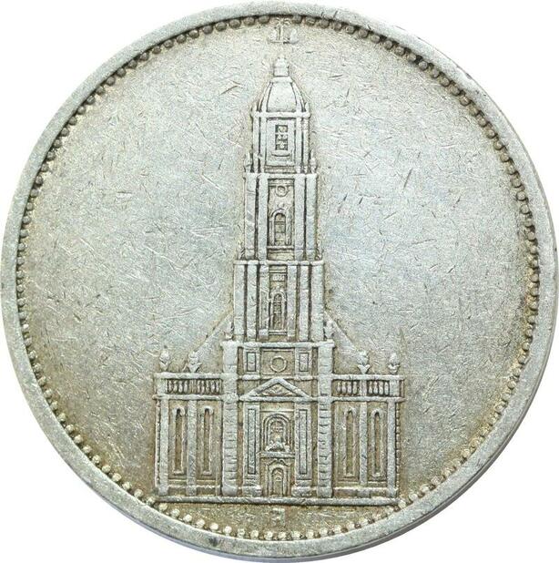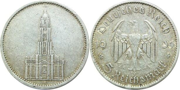 Q0519 Germany Berlin 5 Reichsmark Potsdam Garrison Church 1934 A Silver