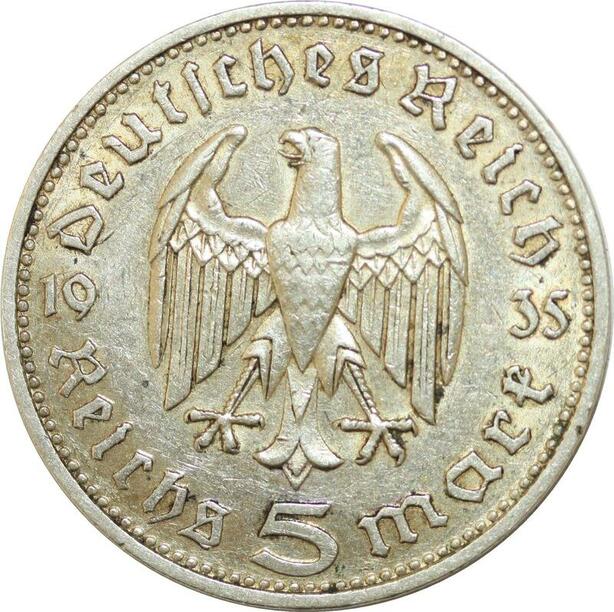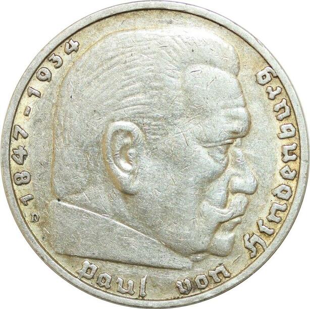 Q0526 Germany Bayern 5 Reichsmark Hinbenburg 1935 D Silver > Make Offer