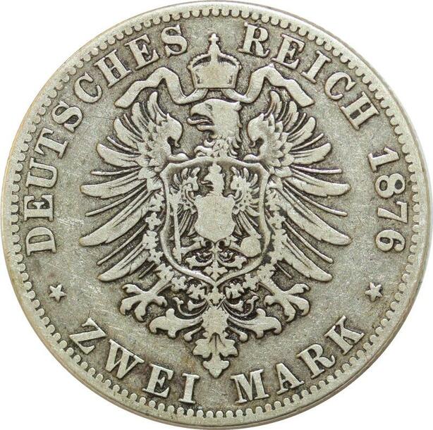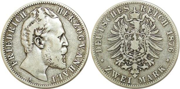 Q0535 Rare Germany Berlin Anhalt 2 Mark Friedrich 1876 A Silver
