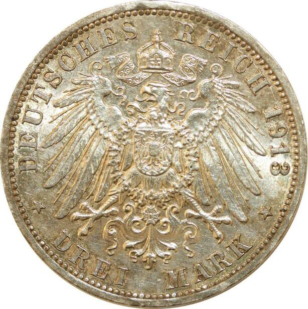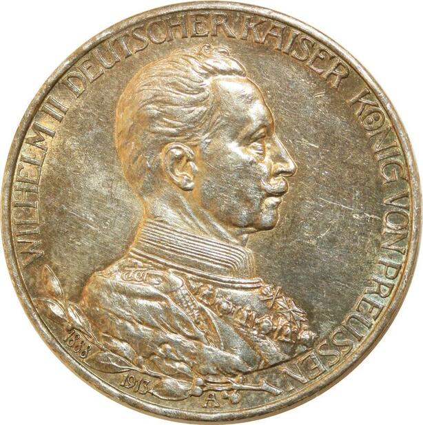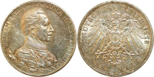 Q0552 Germany Berlin Prussia 3 Mark Wilhelm II 1913 A Silver AU+ > M Offer