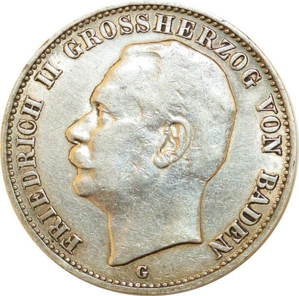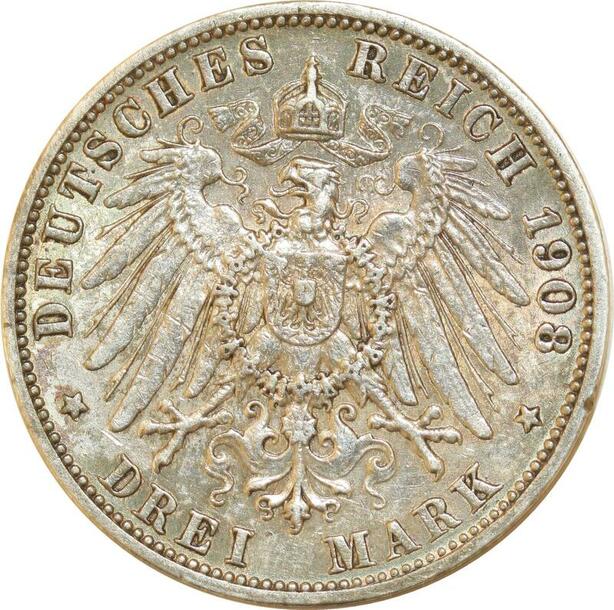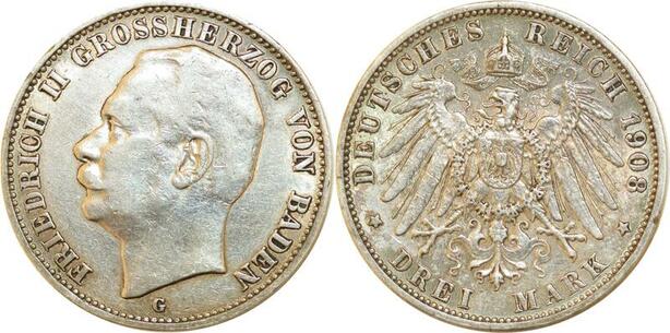 Q0554 Germany Baden 3 Mark Friedrich II 1908 G Silver > Make Offer