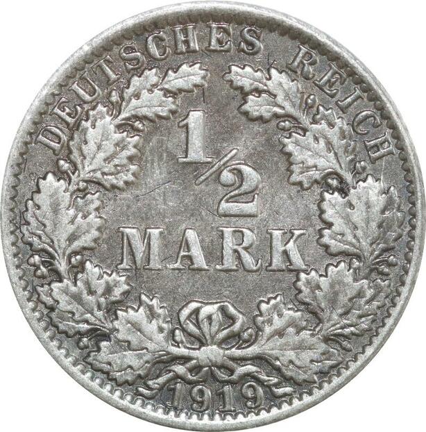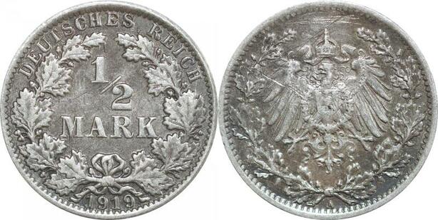 Q0562 Germany Berlin Kaiserreich 1/2 Mark 1919 A Silber XF+ > Make Offer