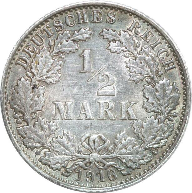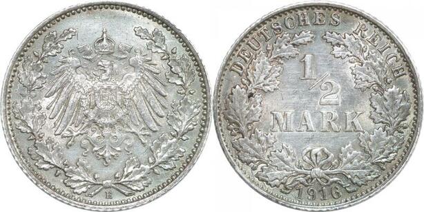 Q0564 Germany Sachsen Kaiserreich 1/2 Mark 1916 E Silber AUNC > Make Offer