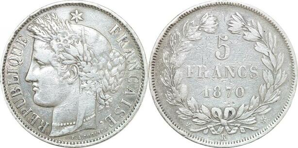 Q0568 France 5 Francs Cérès 1870 M à 4H Argent > Make Offer