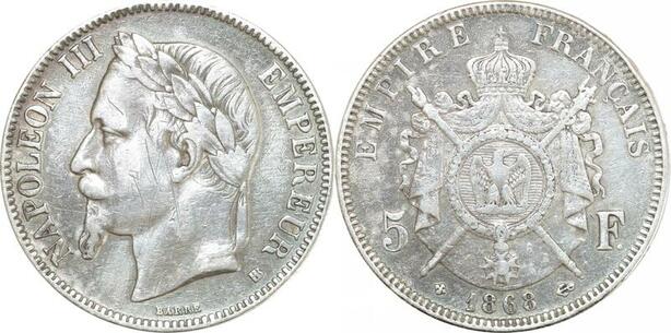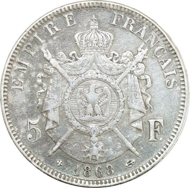 Q0572 France 5 Francs Napoléon III 1868 BB Strasbourg > Make Offer