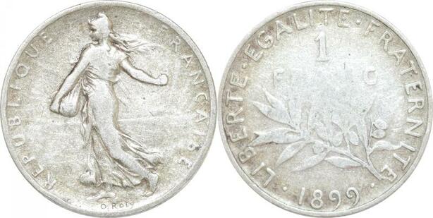 Q0576 France 1 Franc Semeuse 1899 Argent Silver > Make Offer