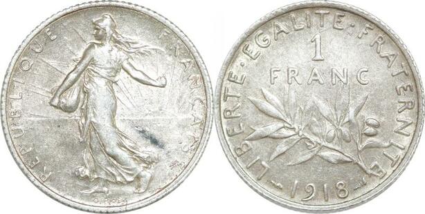 Q0577 France 1 Franc Semeuse 1918 Argent Silver SUP > Make Offer