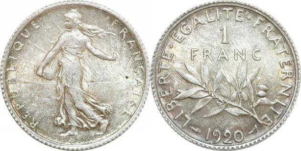 Q0578 France 1 Franc Semeuse 1920 Argent Silver FDC > Make Offer