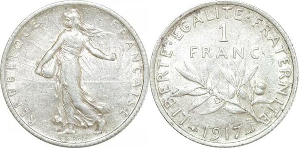 Q0581 France 1 Franc Semeuse 1917 Argent Silver SUP > Make Offer