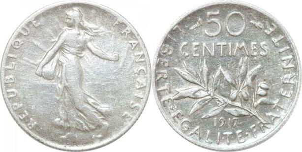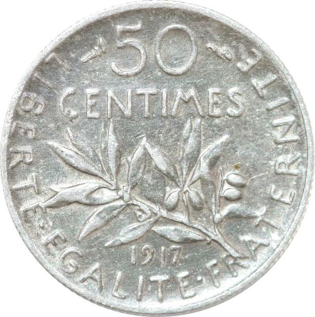 Q0588 France 50 Centimes Semeuse 1917 Argent Silver > Make Offer