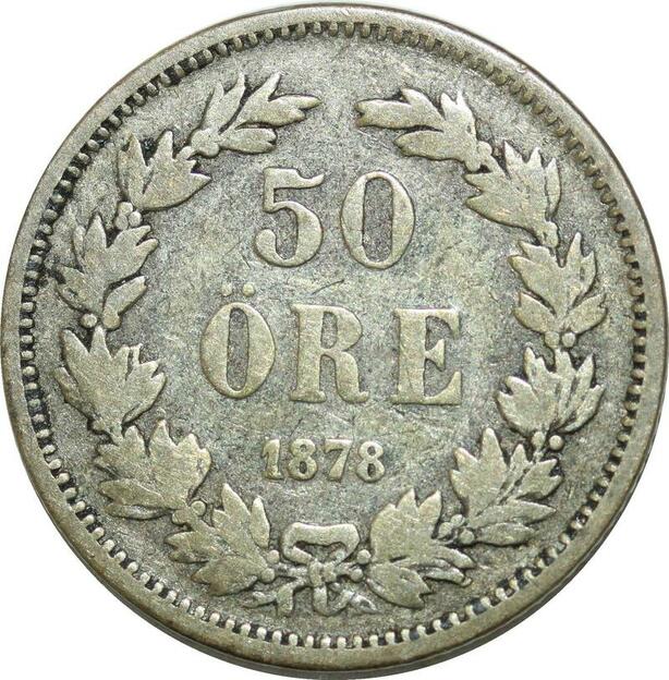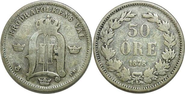 Q0595 Sweden 50 Öre Oscar II 1878 EB Silver > Make Offer