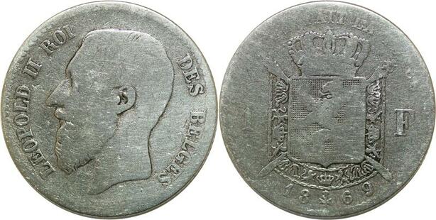 Q0596 Belgium 1 Franc Leopold II 1869 Silver > Make Offer