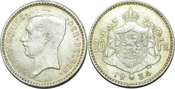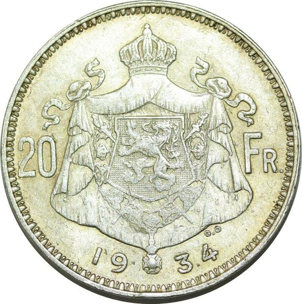 Q0607 Belgium 20 Francs Albert 1934 Silver > Make Offer