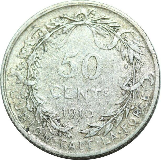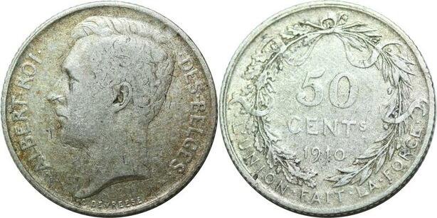 Q0609 Belgium 50 Centimes Albert 1910 Silver > Make Offer