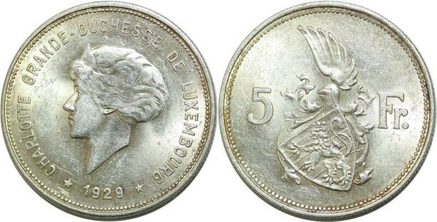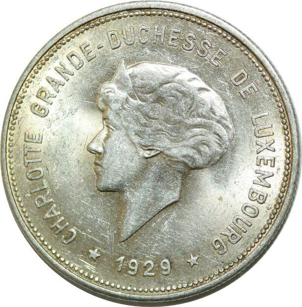 Q0612 Luxembourg 5 Francs Grande Duchesse Charlotte 1929 Silver UNC > Offer