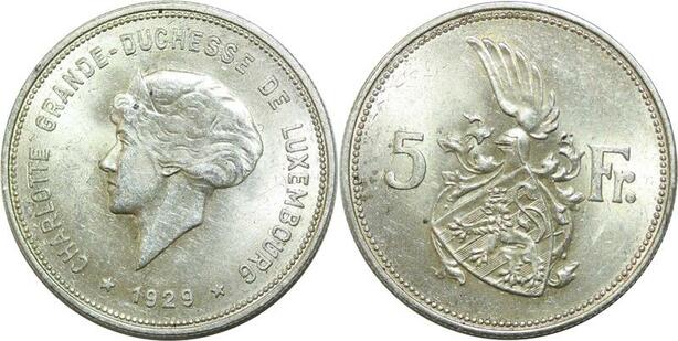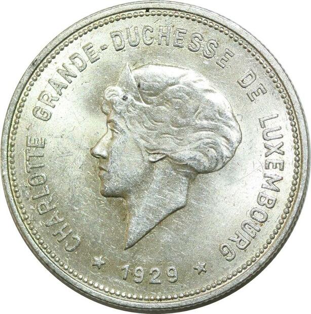 Q0613 Luxembourg 5 Francs Grande Duchesse Charlotte 1929 Silver UNC > Offer