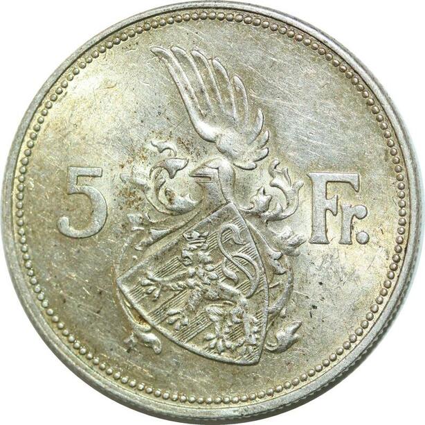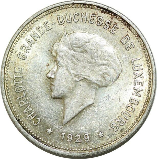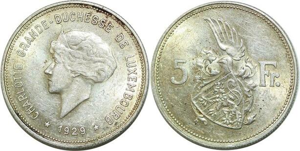 Q0614 Luxembourg 5 Francs Grande Duchesse Charlotte 1929 Silver AU+ > Offer