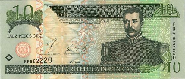 Q0655 Banknote Dominican Republic 10 Pesos Matias Ramon Mella 2002 UNC