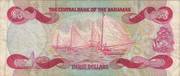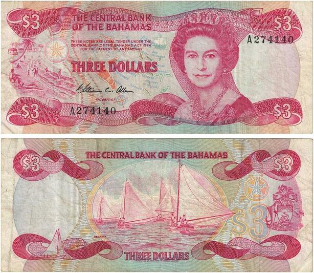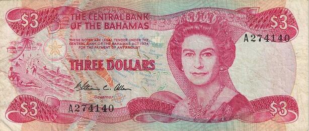 Q0664 Banknote South America Bahamas 3 Dollars Elizabeth II 1984 XF ->Offer