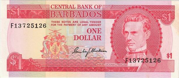 Q0667 Banknote Barbados 1 Dollar Samuel Jackman Prescod 1973 ->Make Offer