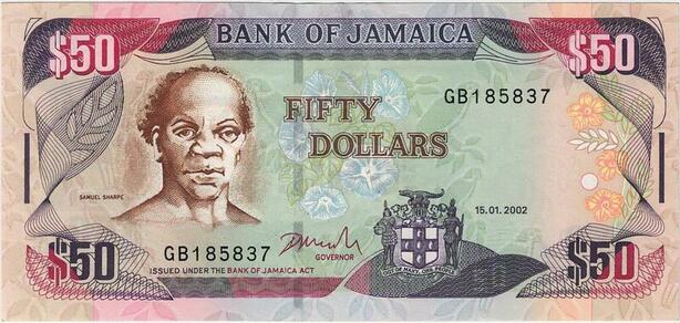 Q0669 Banknote South America Jamaica 50 Dollars Samuel Sharpe 2002 UNC