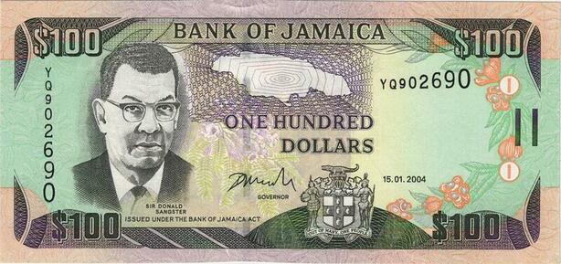 Q0672 Banknote South America Jamaica 100 Dollars Sir Donald Sangster 2004