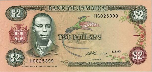 Q0677 Banknote South America Jamaica 2 Dollars Paul Bogle 1993 UNC >M offer
