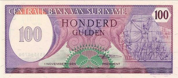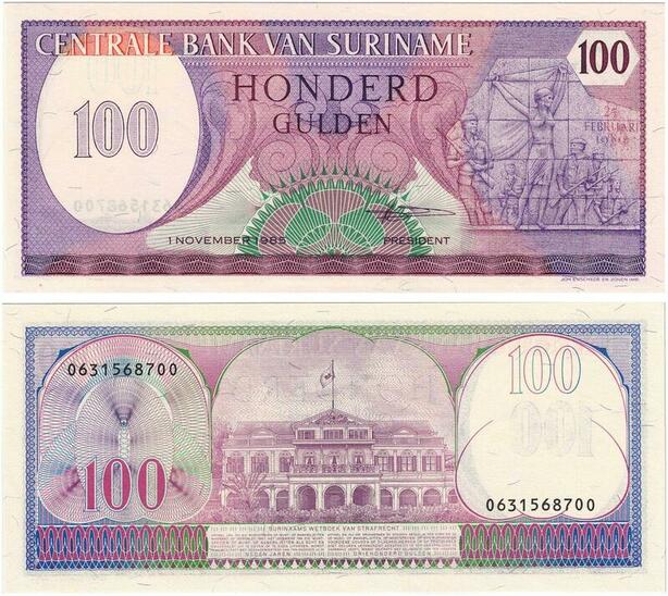 Q0686 Banknote South America Suriname 100 Gulden 1985 UNC ->Make Offer