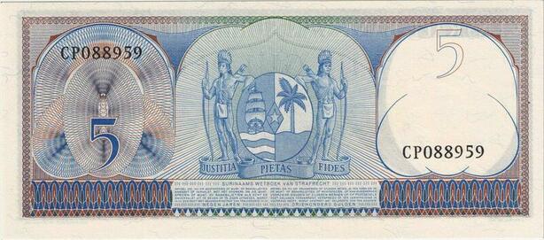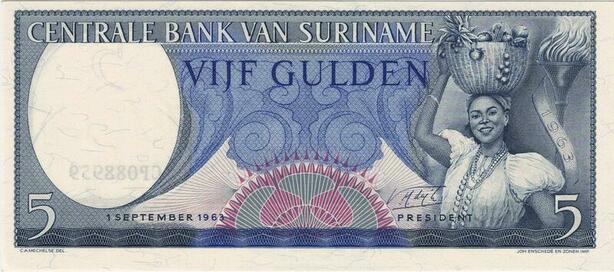 Q0691 Banknote South America Suriname 5 Gulden 1963 UNC ->Make Offer