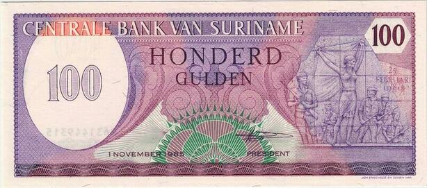 Q0695 Banknote South America Suriname 100 Gulden 1985 UNC ->Make Offer
