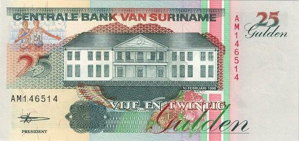 Q0697 Banknote South America Suriname 25 Gulden 1998 UNC ->Make Offer