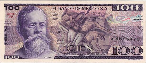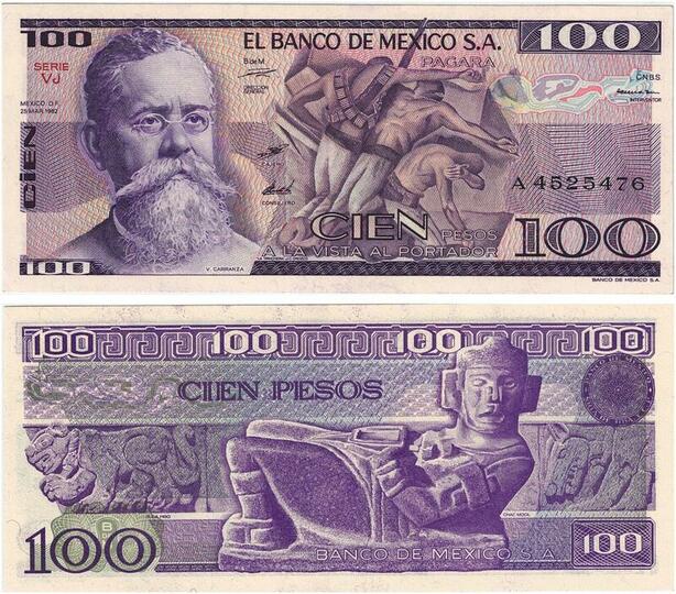 Q0701 Banknote South America Mexico 100 Pesos Venustiano Carranza 1982 UNC