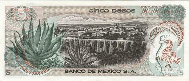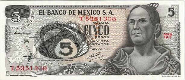 Q0704 Banknote South America Mexico 5 Pesos La corregidora 1972 UNC