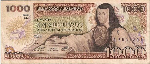Q0709 Banknote South America Mexico 1000 Pesos J. de Asbaje 1985 AU ->Offer