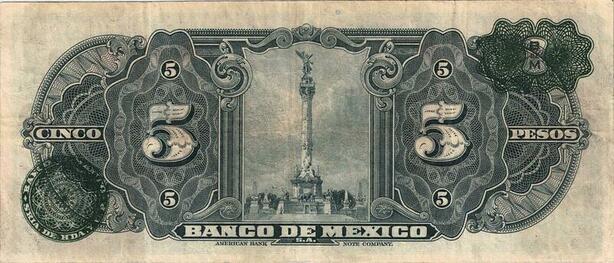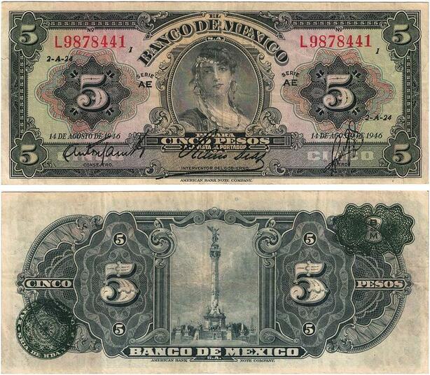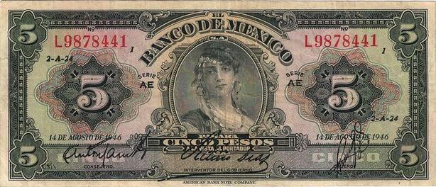 Q0716 RARE Banknote South America Mexico 5 Pesos La Gitana 1946 ->Make Offer