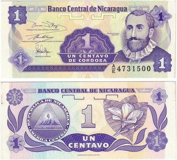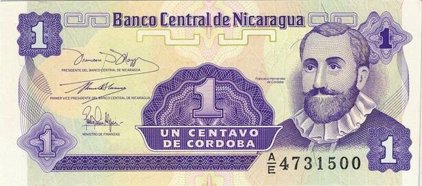 Q0717 Banknote Nicaragua 1 Centavo Francisco Hernandez de Cordoba UNC