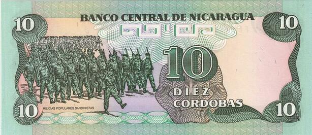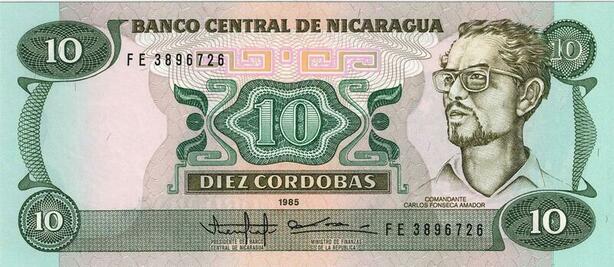 Q0719 Banknote Nicaragua 10 Cordobas Comandante Fonseca Amador 1985 UNC