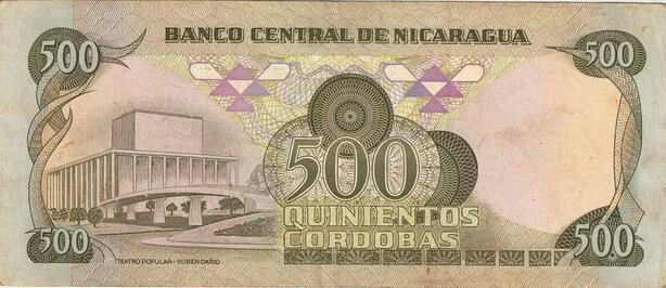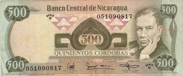 Q0720 Banknote Nicaragua 500 Cordobas Ruben Dario 1985 AU ->Make Offer