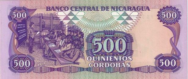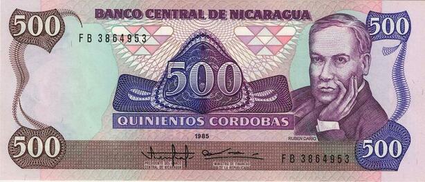 Q0722 Banknote South America Nicaragua 500 Cordobas Ruben Dario 1985 UNC