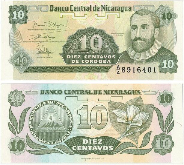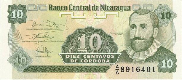 Q0725 Banknote Nicaragua 10 Centavos Francisco Hernandez de Cordoba UNC