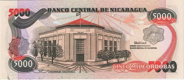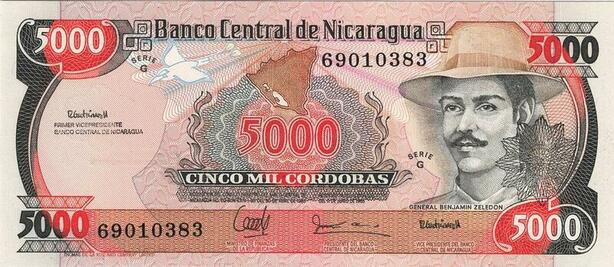 Q0730 South America Nicaragua 5000 Cordobas Benjamin Zeledon 1985 UNC