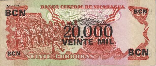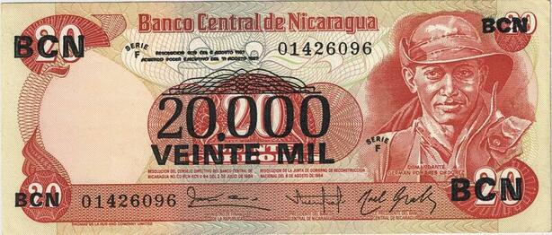 Q0731 Nicaragua 20000 sur 20 Cordobas Comandante Pomarez Ordonez 1984 UNC