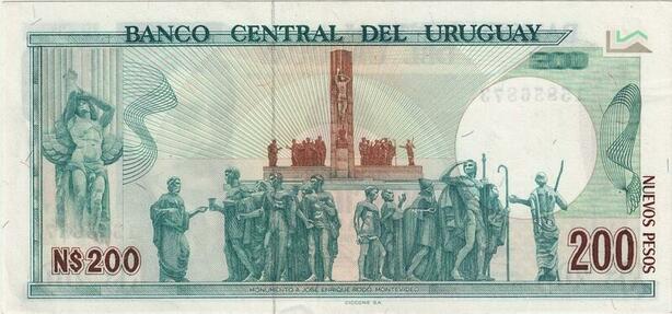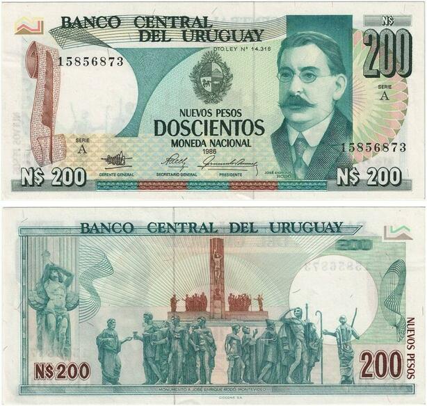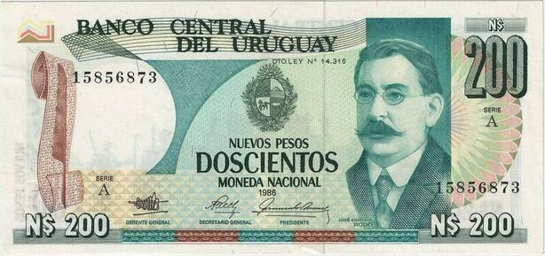 Q0732 Banknote Uruguay 200 Nuevos Pesos José Enrique Rodo 1986 UNC
