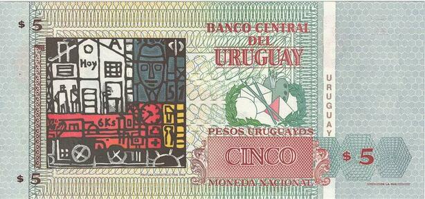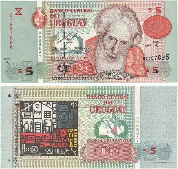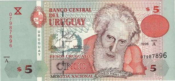 Q0735 Banknote Uruguay 5 Pesos Uruguyaos Joaquin Torres Garcia 1998 UNC
