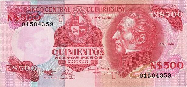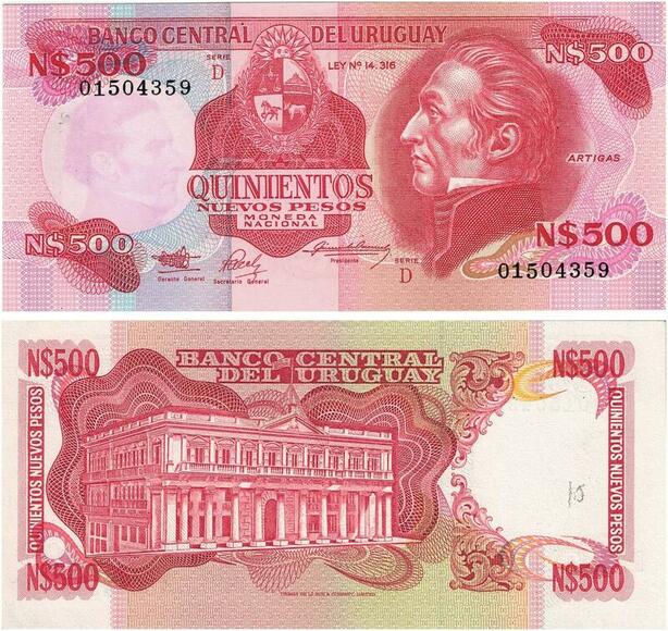 Q0742 Banknote Uruguay 500 Nuevos Pesos José Gervasio Artigas 1990 UNC