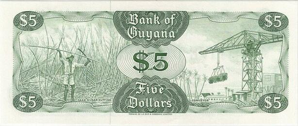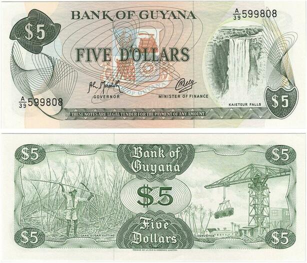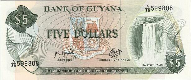 Q0748 Banknote South America Guyana 5 Dollars 1989 UNC ->Make Offer