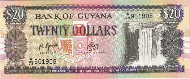 Q0749 Banknote South America Guyana 20 Dollars 1989 UNC ->Make Offer